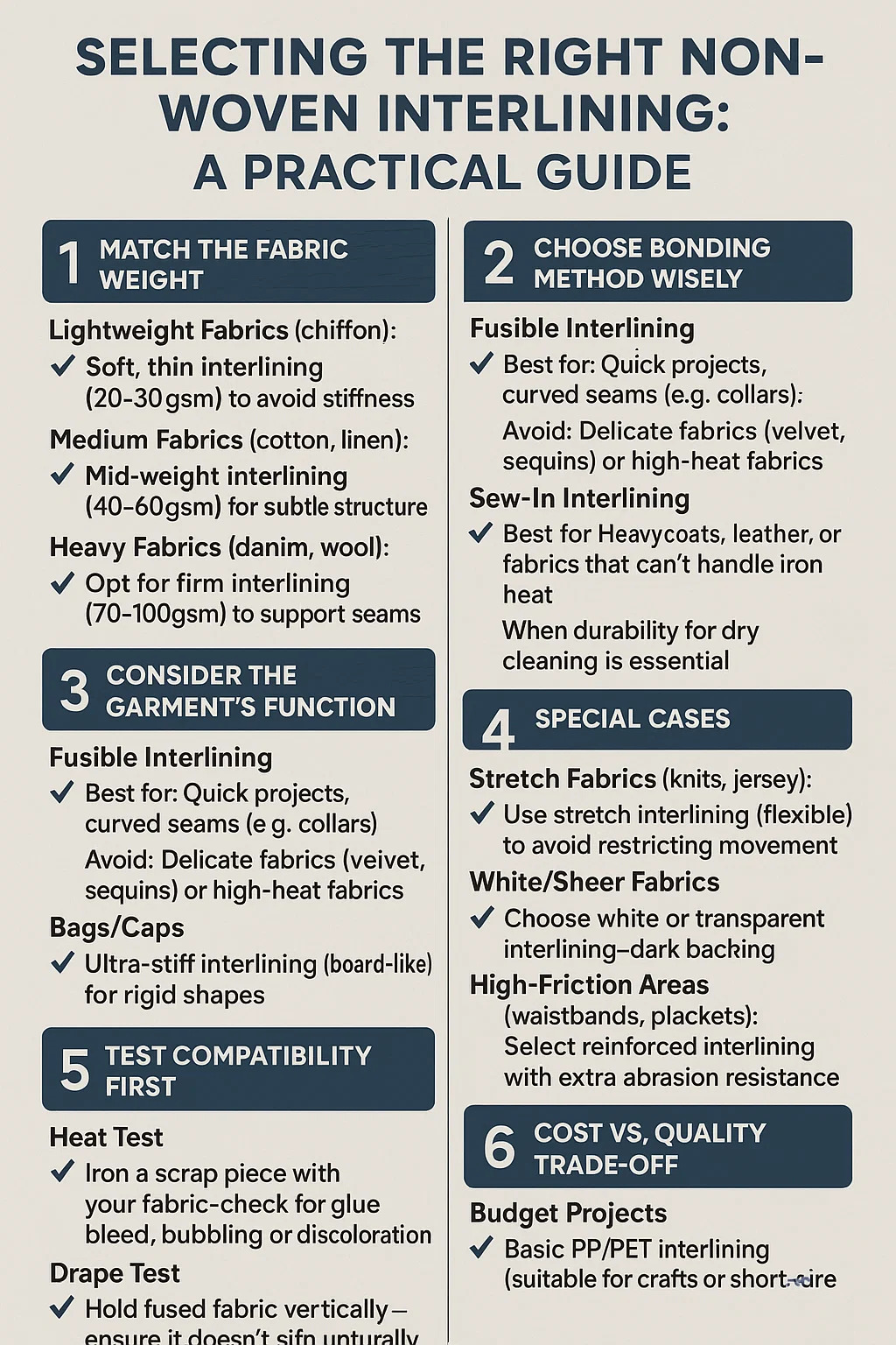 Vải nặng (denim, len): Lựa chọn cho công ty xen kẽ (70-100GSM) để hỗ trợ các đường nối và cạnh.